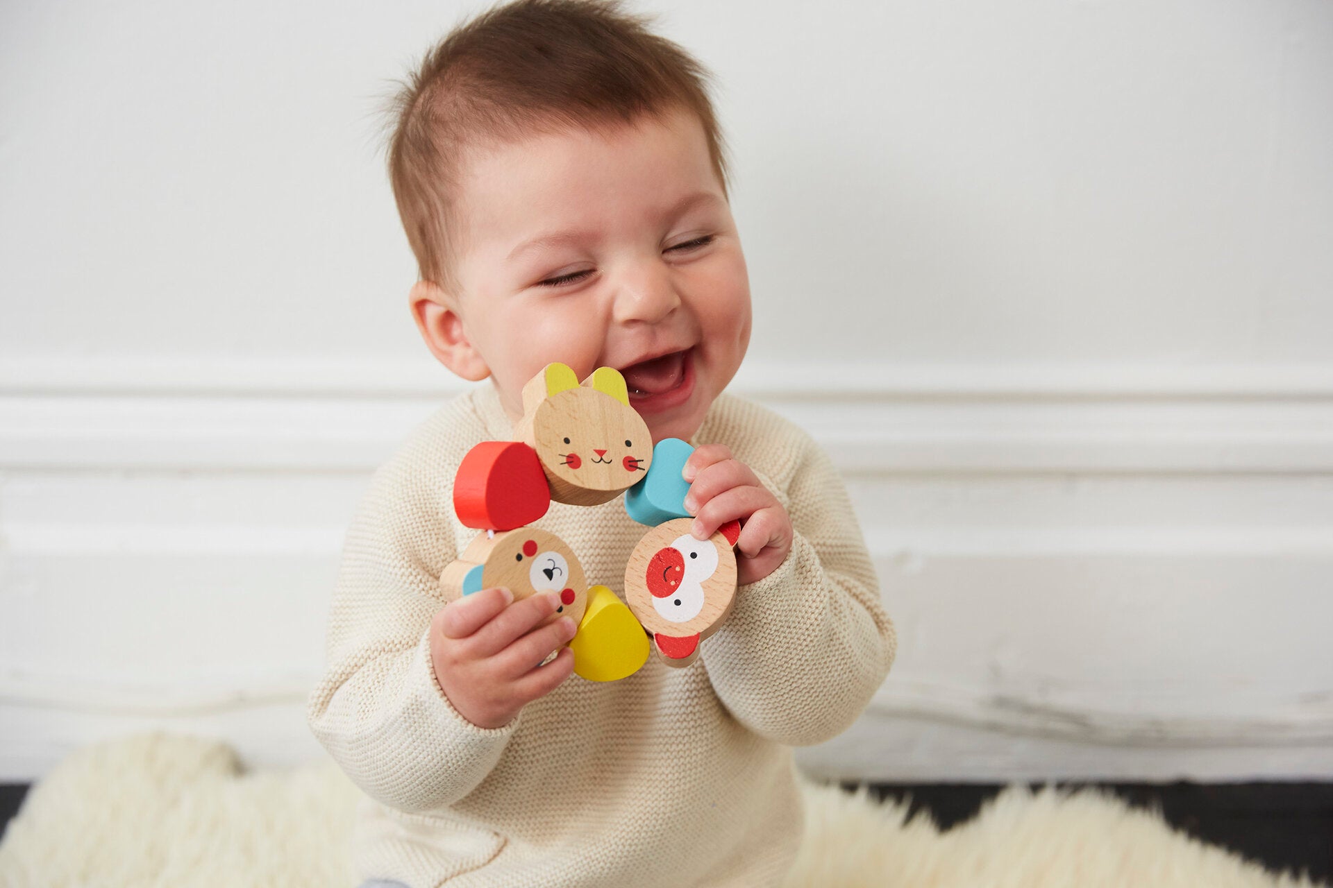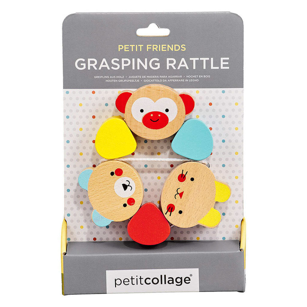 Тази дрънкалка от Petit Collage е идеална за бебета, които вече могат да хващат с ръчички. С три сладки личица на различни животни, тази играчка ще се превърне в любима за вашето бебче. Чудесна за хващане, игри и гризане.