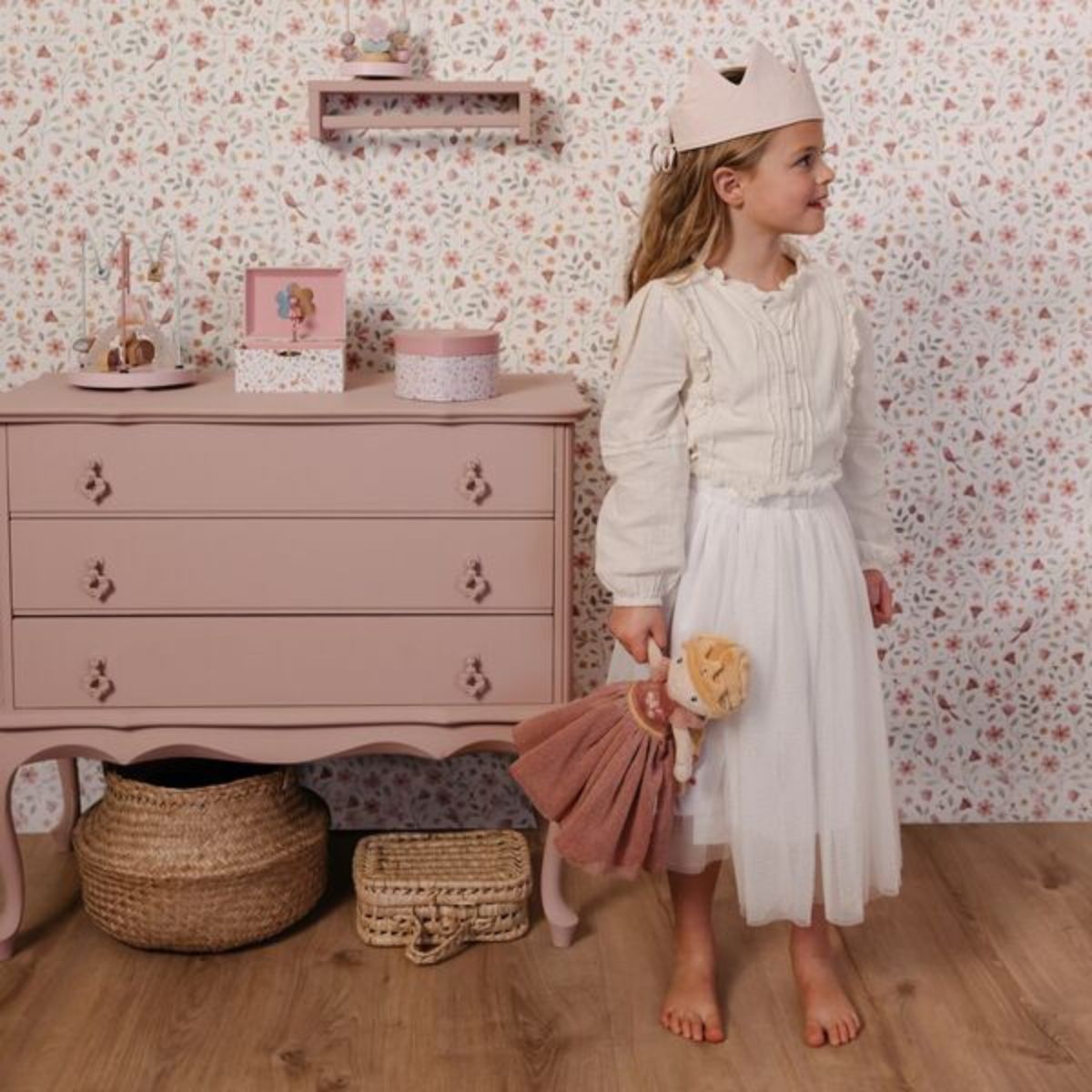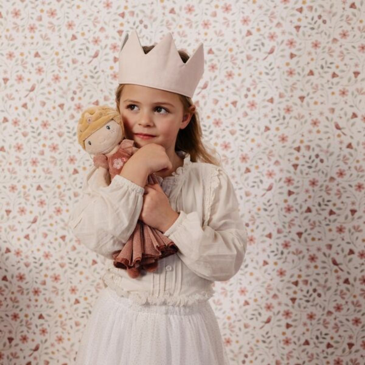 Запознайте се с Princess Julia – очарователна кукла с дълга руса плитка и нежни цветчета в косата. Нейната красива рокля с бродирани цветя и ефирна пола приканва към безкрайни гушкания и приказни приключения. С височина 35 см и изработена от изключително мек материал, Julia е идеалният спътник за игра у дома или навън.