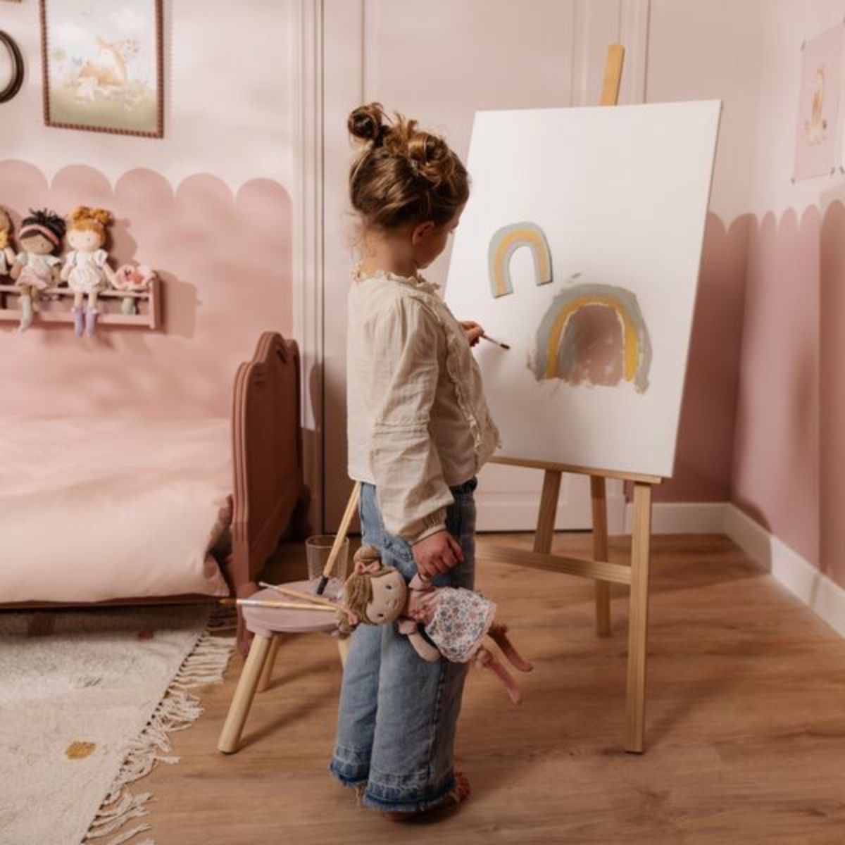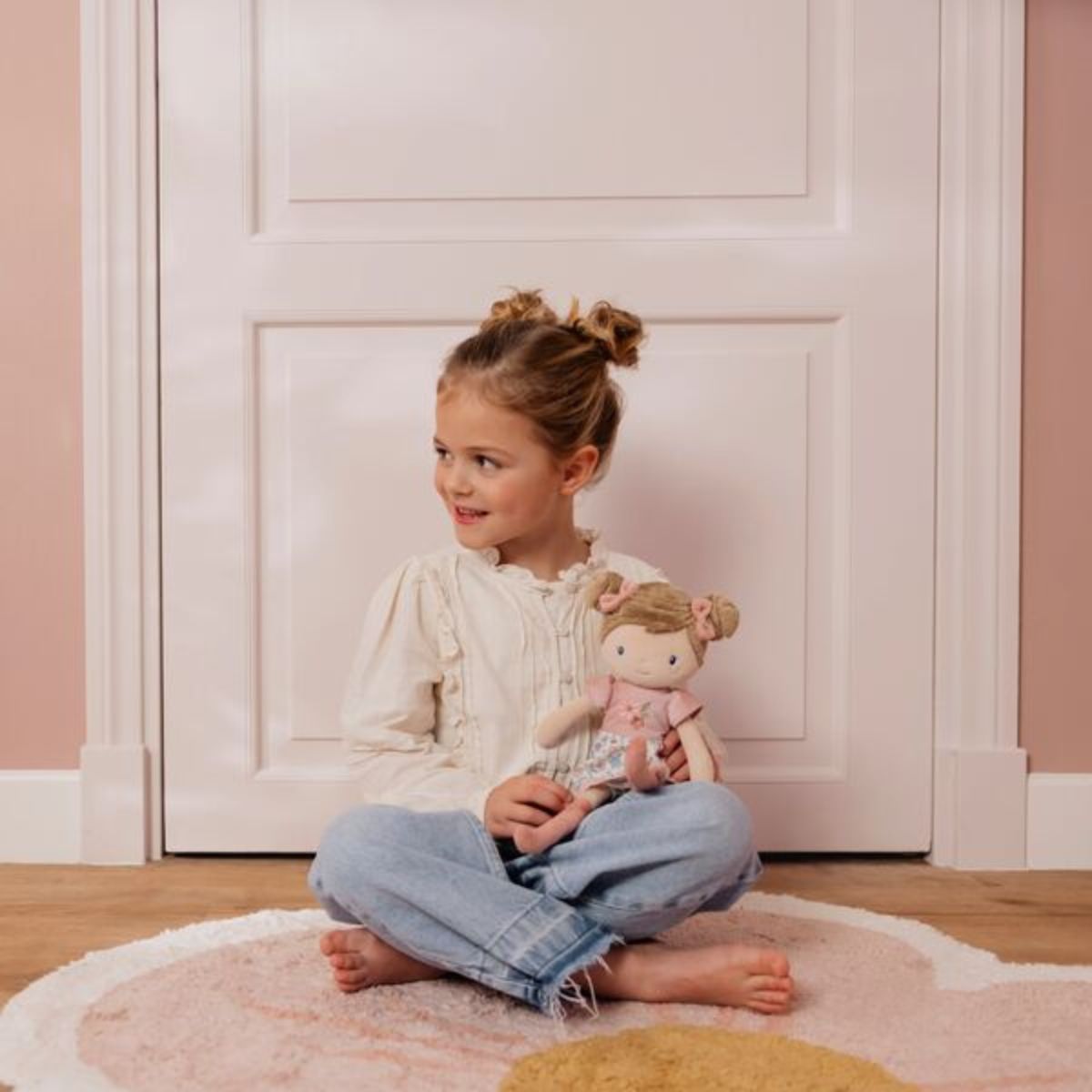 Запознайте се с Rosa, сладка кукла за гушкане с височина 35 см, със сладки кокчета и панделки в косата. Тя носи весела флорална пола, мека тениска и ботуши с помпон. Изработена от възхитително мек материал, идеален за гушкане и съвместни приключения. Rosa кани за игра и бързо се превръща в най-добрия приятел на вашето дете.